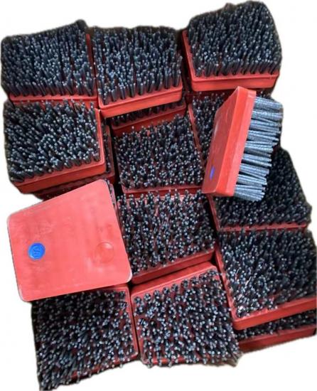 JINSHAN silicon carbide frankfurt antique brush is made of nylon filaments with silicon carbide grit inside. It can be used on manual polishing machine or automatic polishing machine for dealing with different kinds of natural stone and artificial stone. The stone surface can be polished to get a satin effect and its natural texture will be appeared after polishing. Meanwhile, the stone surface will have an antique look and become waterproof with skid prevention.